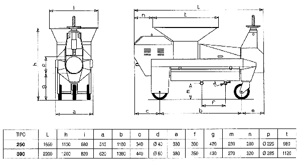 Single screw continuous presses suitable for pressing freshly picked grapes, crushed stemmed grapes and fermented husks, also employed to estract juice or liquids from wet fibrous products. All models are actioned by a threephase electric motor. The rotation speed of the screw, obtained by a gearbox, is between 11 and 12 Rpm for models 250 and 300, while for models 350 and 400 a speed variator reduces even more the rotation of the screw from 3 to 9 Rpm. All parts in contact with the product (cage cover, cage, screw conveyor, hopper) are made of stainless steel, except for the the screw and the maltese cross which are mode of antiacid bronze. The cage is made of longitudinal trapezoidal shaped bars with a minimun slot of 0.5 mm large. The pressure regulation of the outgoing mass of husk is made manually by a handwheel. All press types are manufactured according to the CE standards and are equipped with all necessary protection parts and a control panel for the emergency stop of the machine.